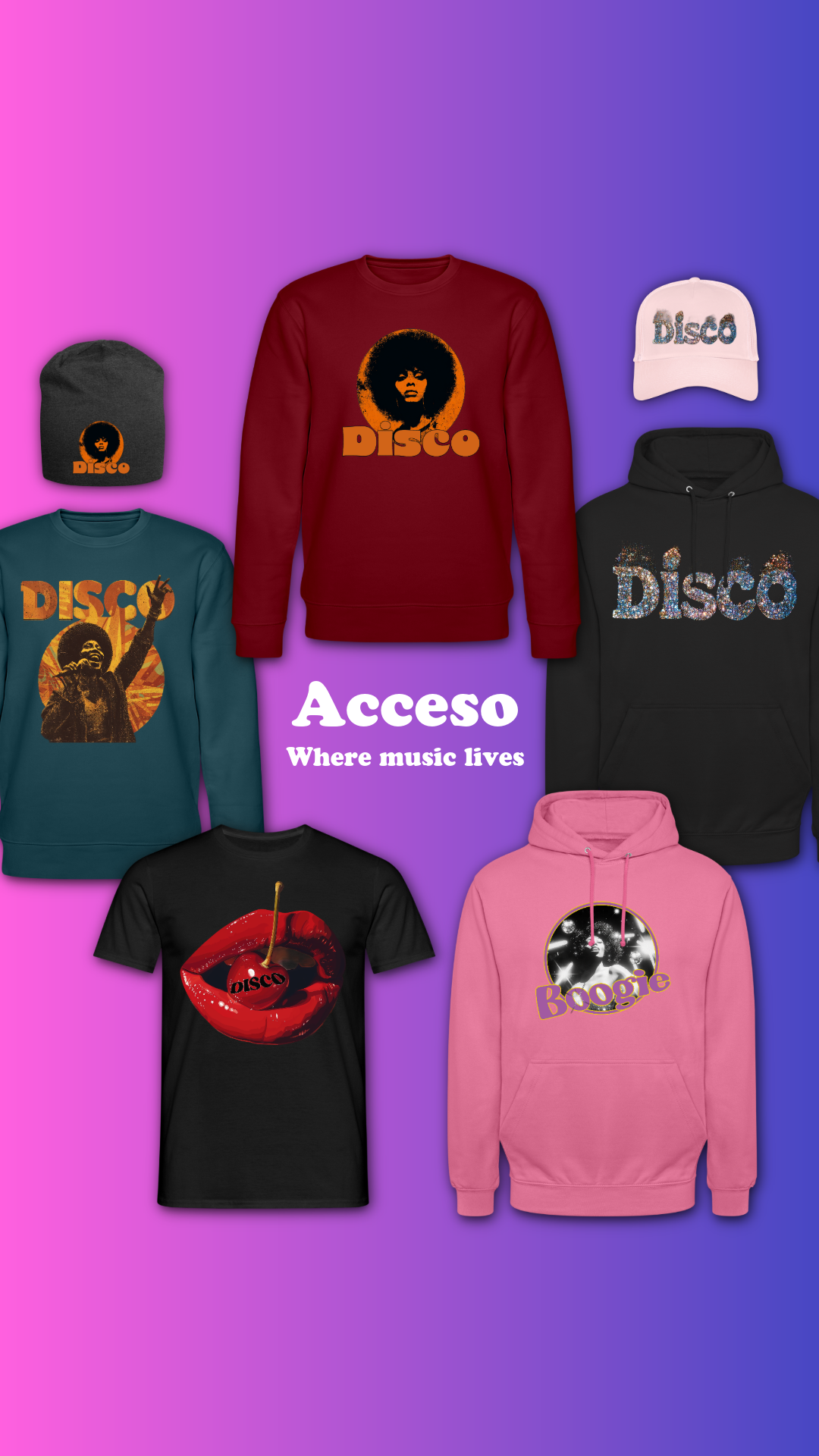 Premium musikmode som betyder något. Presenter inspirerade av Soul, Funk, Jazz, Disco och Hip-Hop som musikälskare kommer bära med stolthet. Where music lives.