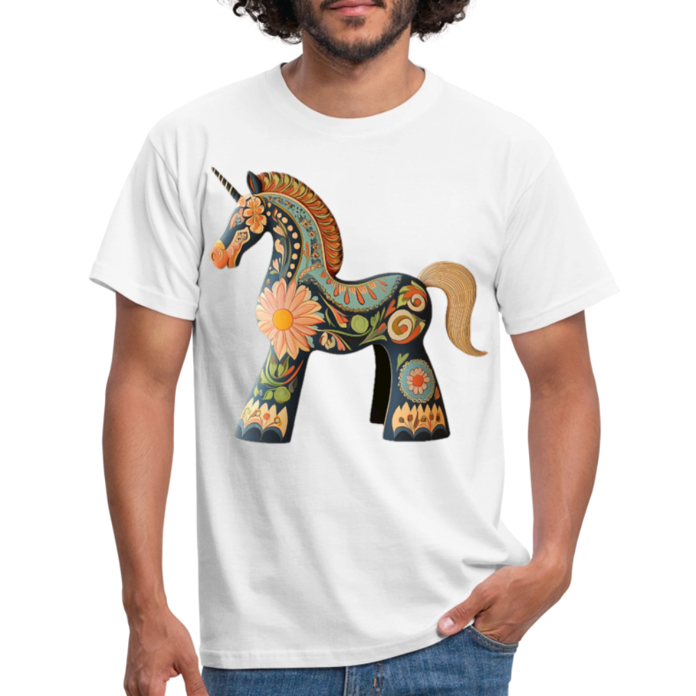 En enhörning i en drömlik, färgstark stil.